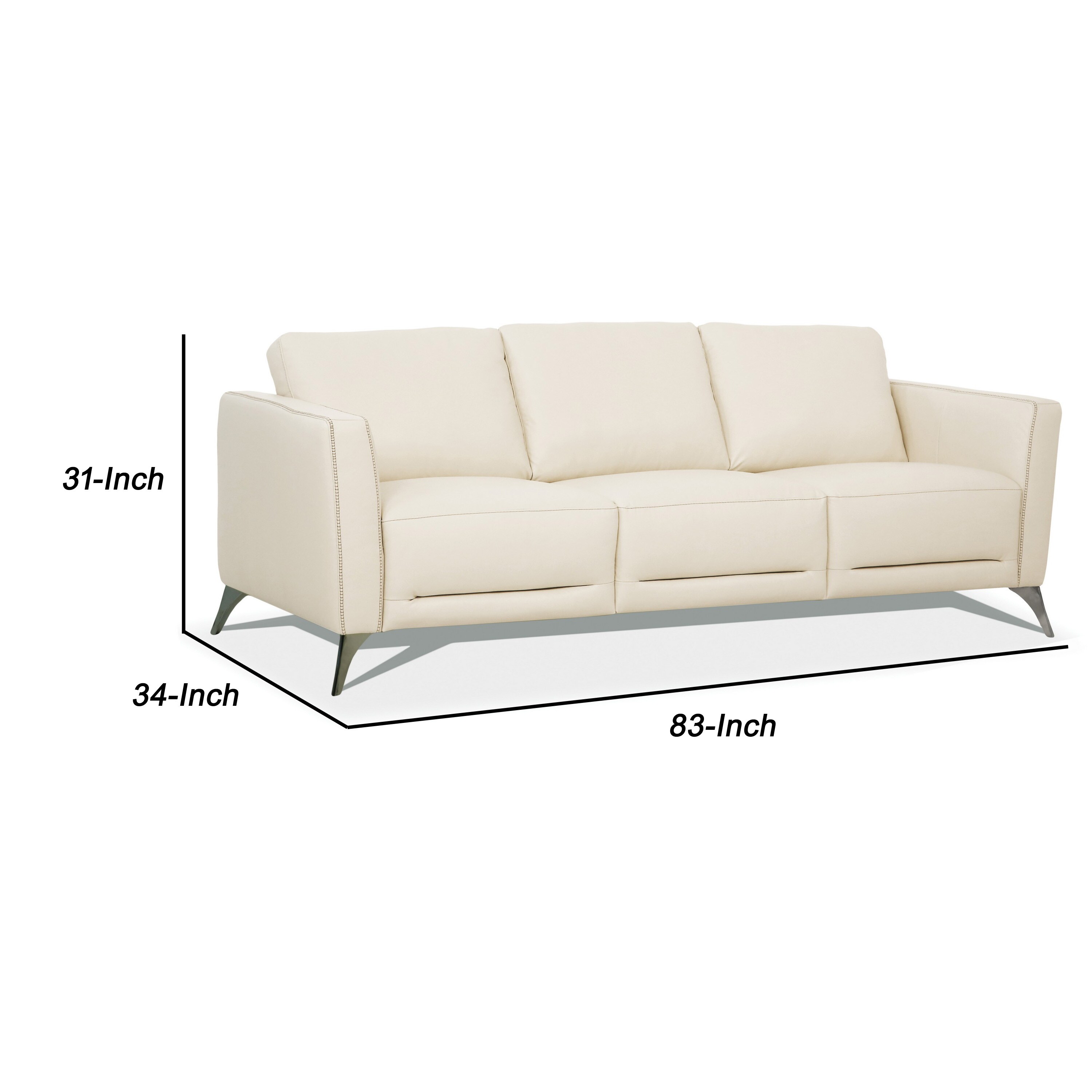 Leather Upholstered Sofa With Track Arms And Angled Metal Feet Cream Overstock 31606373