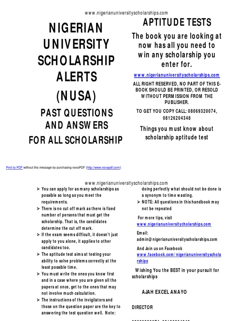 Nigerian Scholarships Past Questions And Answers1 1 Pdf Test Assessment